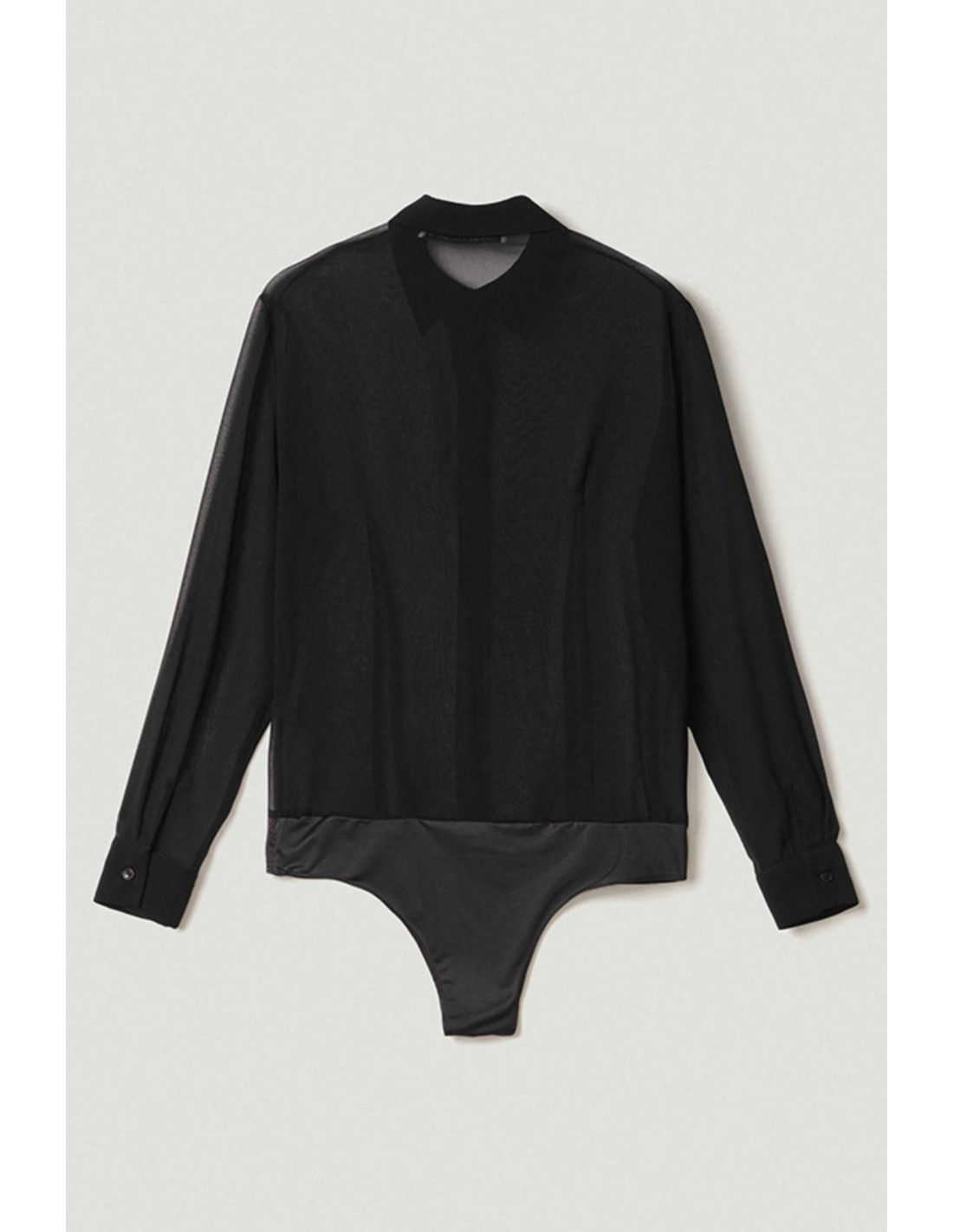 Olivia - camicia body in georgette con abbottonatura frontaleColore: NoirComposizione: 100% poliestereLa modella indossa la taglia S